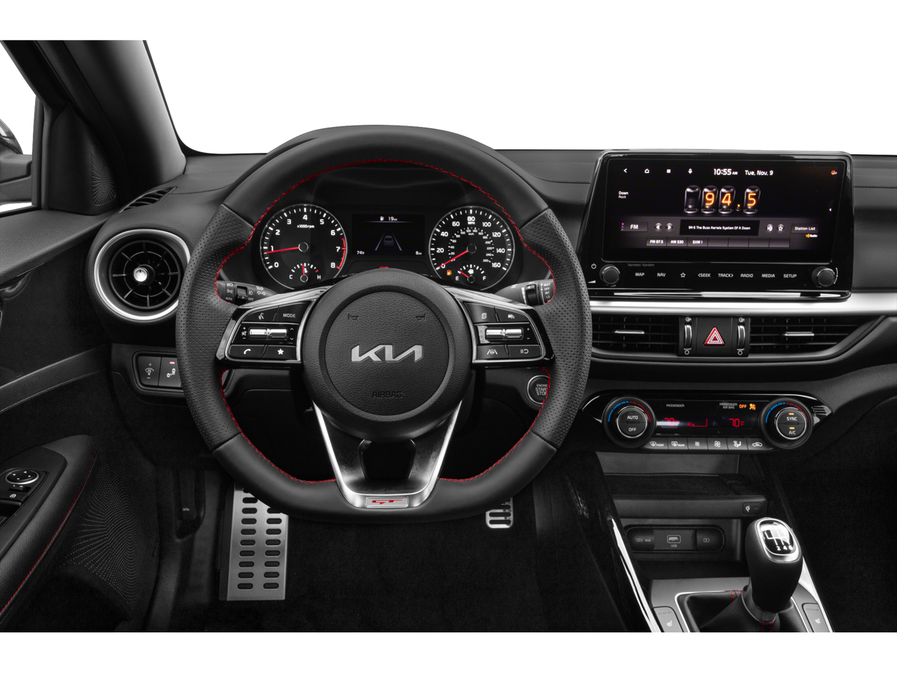- Radio: 10.25" Display Audio -inc: 6 speakers, 10.25" touch screen, navigation, Kia Connect, HD radio, Apple CarPlay, Android Auto, Bluetooth hands-free and USB input